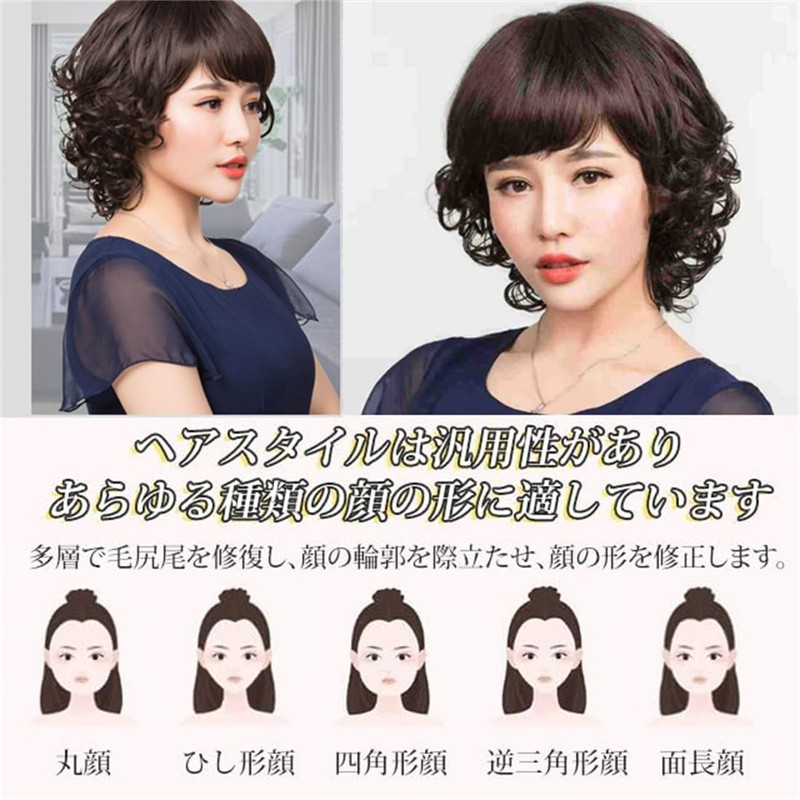 - Full Wig: Medium curly full wig. It also has a natural appearance that makes your face look smaller, making it suitable for everyday use. Easy to wear with confidence even for beginners