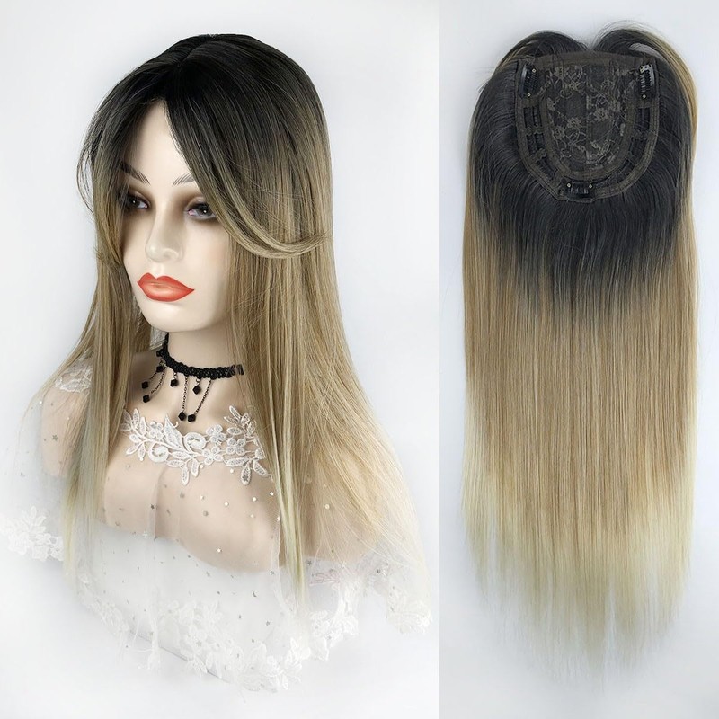 Middle Part Forehead Hairline Replacement Wiglet 45cm Clip in Synthetic Topper with Bangs Seamless Hairpiece (R4/27/613#)