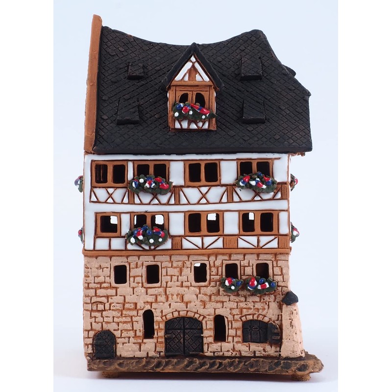 Midene Ceramic Aroma Light House, Tea Light Holder, Handmade, Artistic Replica Dürer House in Nuremberg, Germany, B263AR