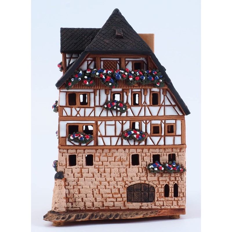 Midene Ceramic Aroma Light House, Tea Light Holder, Handmade, Artistic Replica Dürer House in Nuremberg, Germany, B263AR