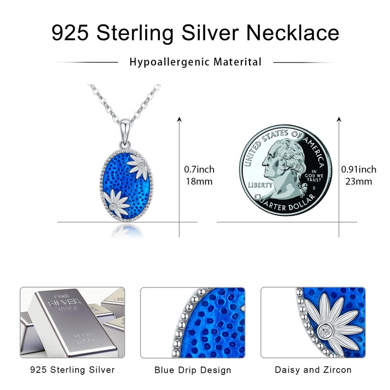 - 【Design Inspiration】: Daisies symbolize innocence, purity and beauty. They also represent happiness, which comes from their warm appearance and many bright color variations. Use the blue oil drip daisy photo box necklace to store photos between you and your loved one, bringing you close to each other's hearts.