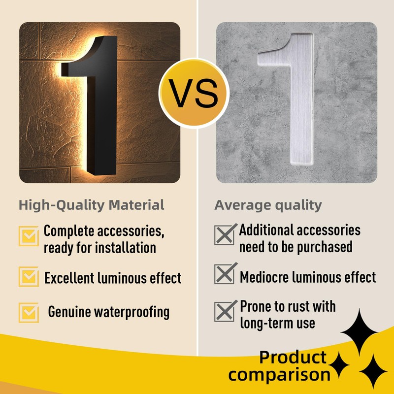 🌟Modern LED House Numbers - Aesthetics meet timeless durability. The chic black and white design exudes contemporary elegance, making a striking first impression that complements the architectural style of any home.