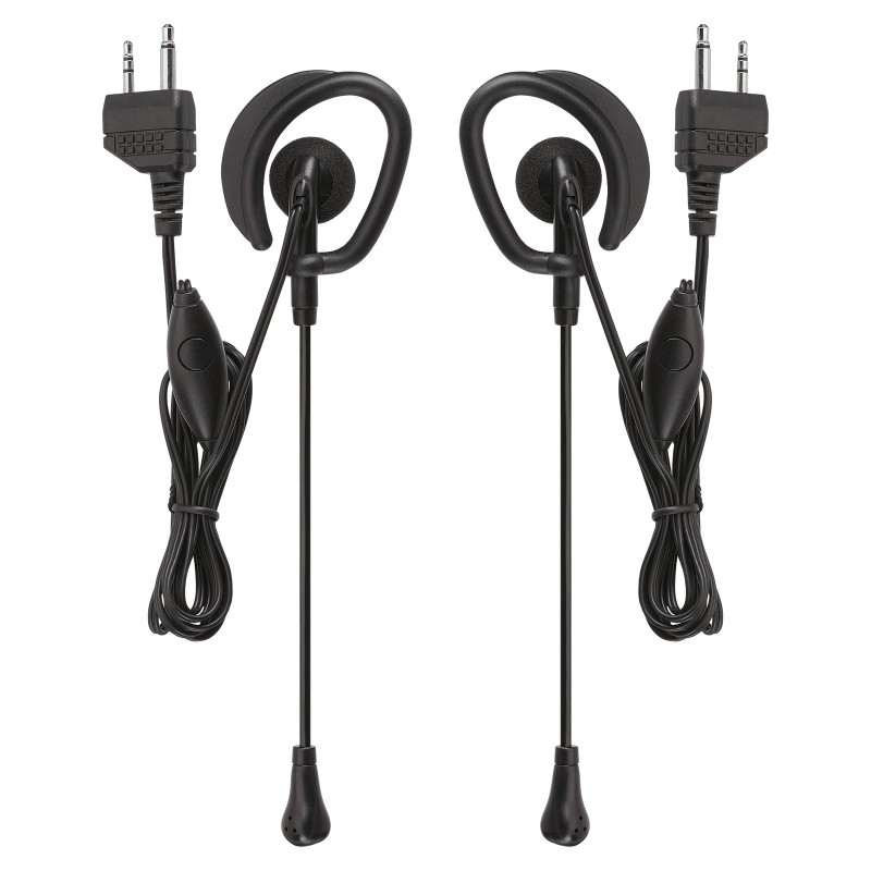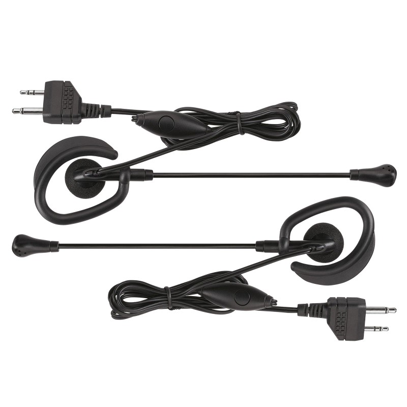 These headset microphones from Midland work with the Midland G, GXT, and LXT series FRS/GMRS radios. This package includes two headsets. Each headset fits securely over the ear, provides a Push-To-Talk (PTT) button, and is VOX hands-free capable.