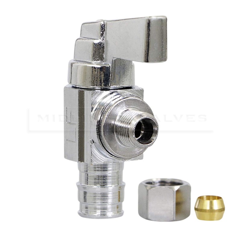 Midline Valve 27-XB12-OM Pex Water Supply Stop Valve with Quarter Turn HANDLE ; One Piece Design; Angle Shut-off for Toilet, Sink, Dishwasher; 1/2 in. PEX x 3/8 in. COMP; Chrome Plated Brass