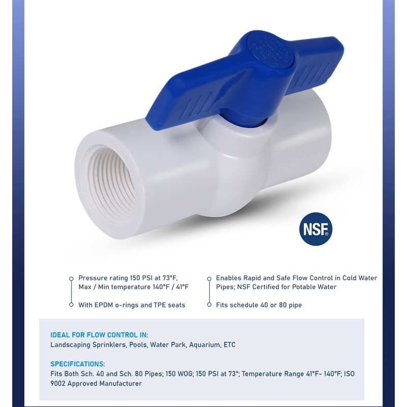• Ideal for Flow Control In: Landscaping Sprinklers, Pools, Water Park, Aquarium, ETC.
