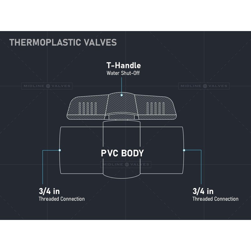Midline Valve PVC Ball Valve Blue T-Handle for Potable Water 3/4 in. FIP Whit...