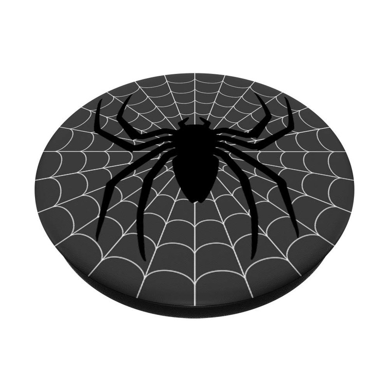 Midnight Charcoal Gray Black Spider and White Web PopSockets Grip and Stand f...
