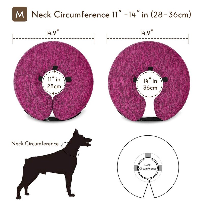 - 【Perfect size design】Size M dog cone collar, suit for neck circumference 11”-14”.Measure the size of the pet's everyday collar, and get a more suitable inflatable collar, especially recommended Beagle,Dachshunds, Basset dog.