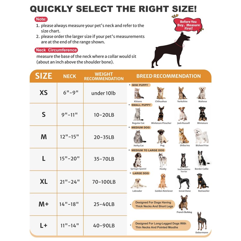 - DOG CONES FOR LARGE DOGS:This inflatable dog donut collar is a perfect cone for dogs after surgery.Size XL dog cone collar, neck circumference 18”-24”. Measure the size of the pet's everyday collar, and get a more suitable pet inflatable collar, especially recommended Rottweiler, German shepherd dog, Saint Bernard Dog, Boxer, etc