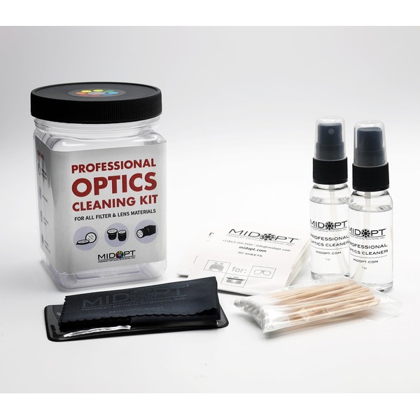 MidOpt Professional Optics Cleaning Kit, for Clean and Smudge-Free Lenses, Optical Tissue, Cotton Swabs, Glass Cleaner, Microfiber Cloth, CK100-NA