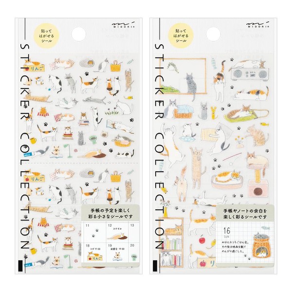 Midori 82687006 82688006 Notebook Seal, Cat Pattern, S + M, Set of 2