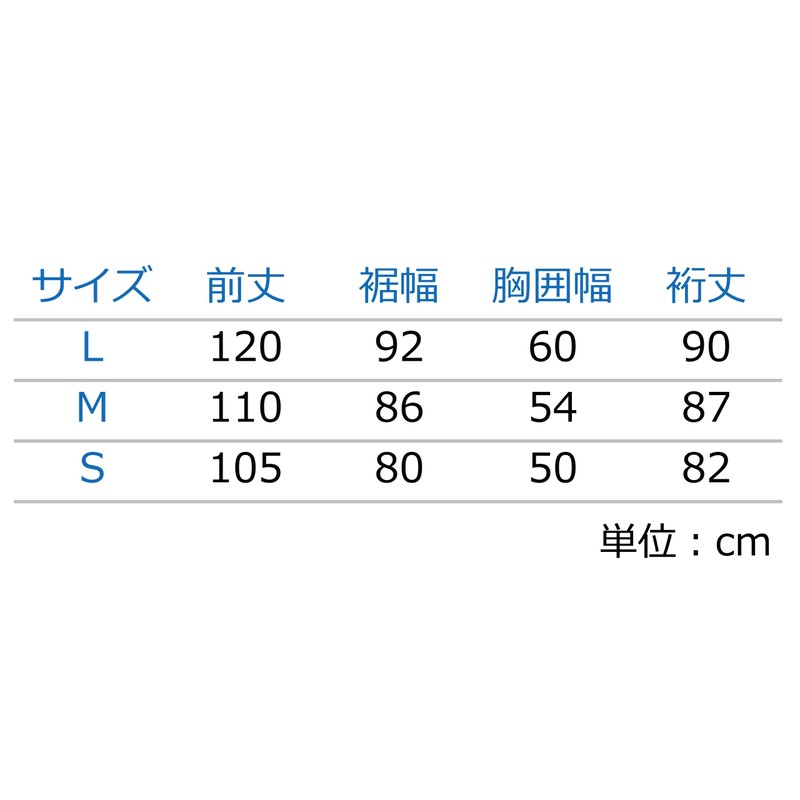 - S (front length: 105cm, bottom width: 80cm, chest width: 50cm, sleeve length: 82cm) M (front length: 110cm, bottom width: 86cm, chest width: 54cm, sleeve length: 87cm) L (front length: 120cm, hem width: 92cm, chest width: 60cm, sleeve length: 90cm) Box size (260mm x 150mm x 100mm)