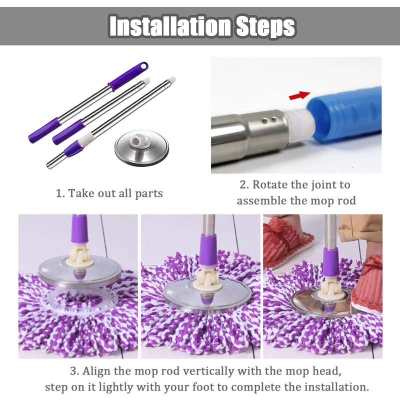 - ✔EASY TO USE: This replacement mop handle comes with a handle twist and release locking system, perfect for your new or used spinning mop. Open the latch before rotating, align the mop with the protruding part and push the handle up and down to clean and rotate the mop easily.