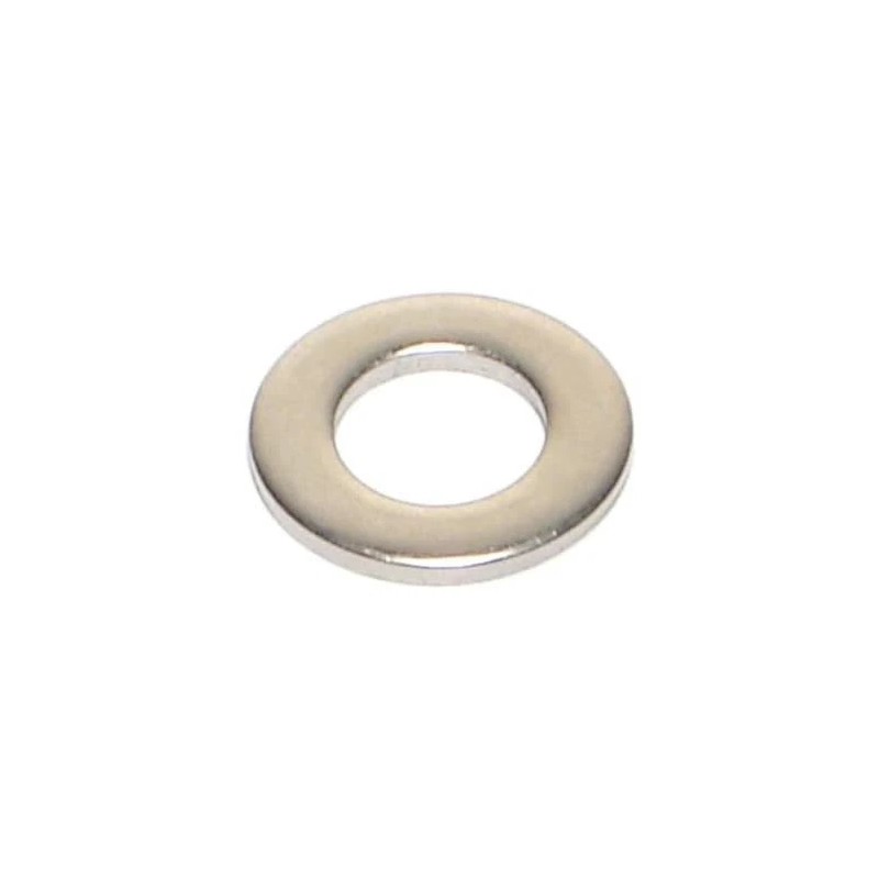 A flat washer is a thin, usually round, plate with a hole in the middle that is normally used to distribute the load of a threaded fastener. USS flat washers have a large, wider body. SAE flat washers are machined to a tighter specification and have a smaller outside diameter.