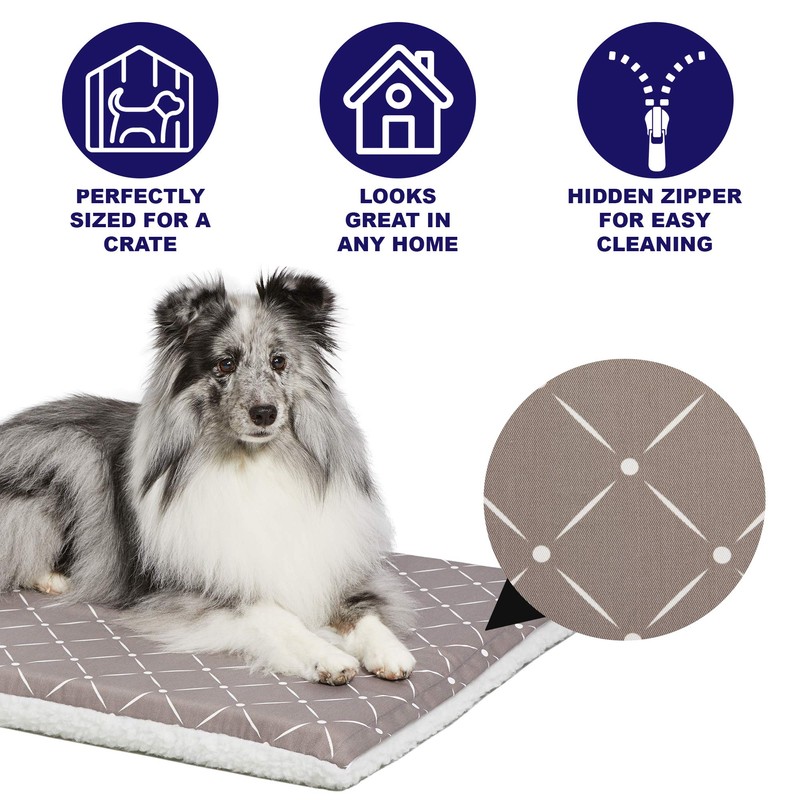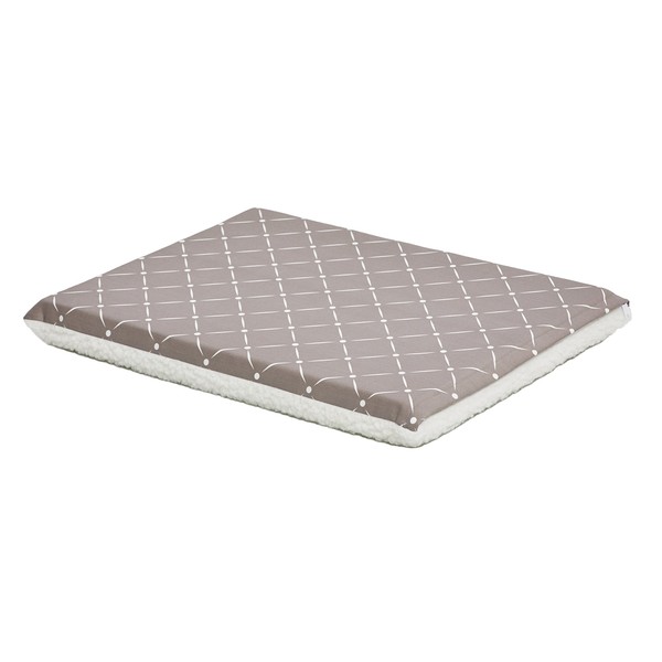 If you’re in the market for a dog crate pad that combines comfort, style, and functionality to create a luxurious, supportive pet bed your dog or cat will love then you have come to the right place! MidWest Homes for Pets is proud to offer you our Paxton Reversible Pet Bed line by Quiet Time pet beds. These dog pads feature a trendy diamond pattern in plum, mushroom or blue on one side and a super-soft white fleece on the reverse side of the pet bed. Each bed has an easy-to-remove remove pet bed cover (with hidden zipper) and a foam pad cushioning your dog's weary joints and muscles. These pet beds are designed to fit MidWest 24-inch long wire dog crates but work great as a standalone pet bed as well. Each pet bed cover is machine washable & dryer friendly for a longer & cleaner look. MidWest Homes for Pets stands behind the quality of our products with a 1-Year Manufacturer's Warranty. If you have any questions regarding our dog beds or cat beds our customer service department would be glad to help you. MidWest customer service can be contacted at: 1-800-428-8560, available 9:00 AM - 4:00 PM, Monday - Friday EST.