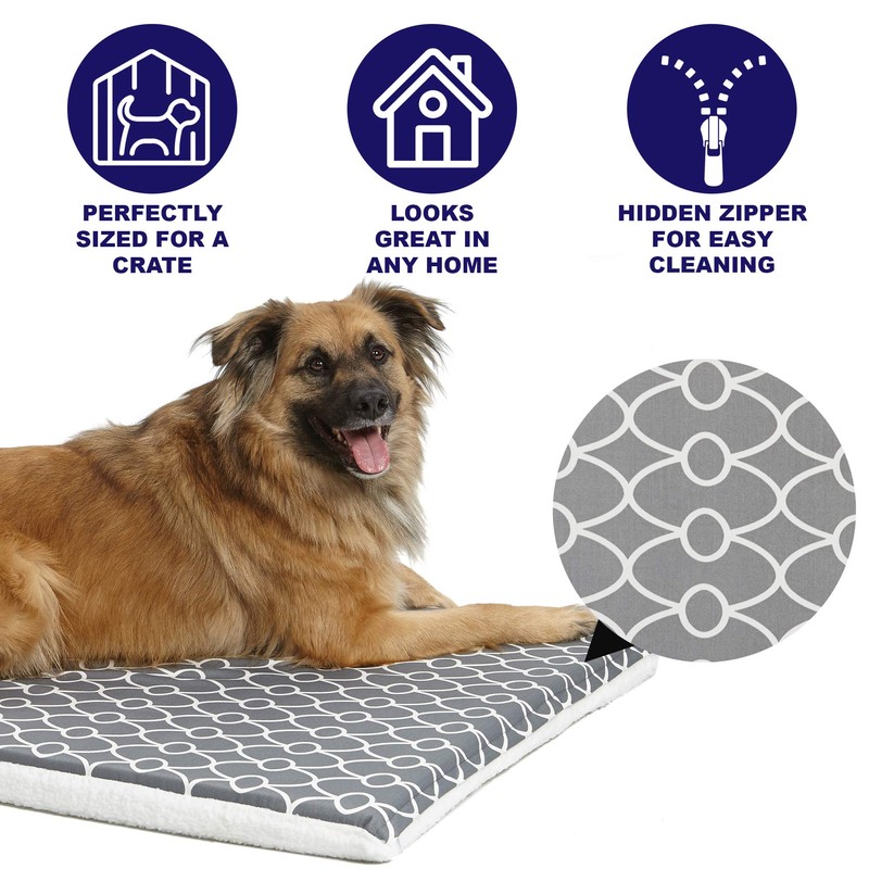 - EXTRA LARGE DOG BED in gray geometric print is ideal for small dogs w/ an adult weight of 71 - 90 pounds | Dog bed measures 47.75L x 30.5W x 2.25H inches & fits most 48-inch long metal dog crates