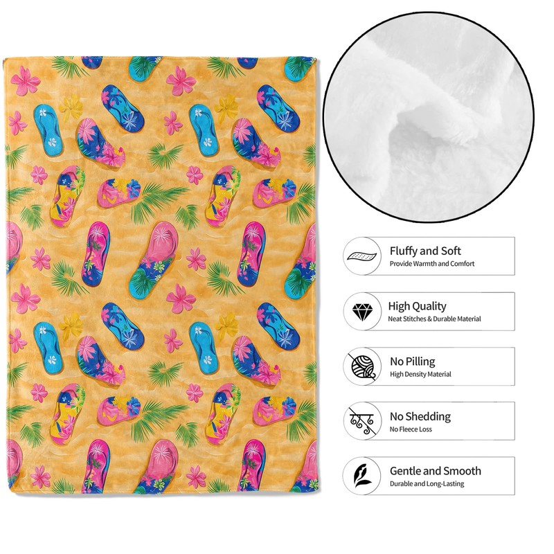 MIEPOS Flip-Flop Summer Fun Throw Blanket,60x80in,Soft,Lightweight Flannel,Palm Leaves Tropical Flower Blankets - Gifts for Men Women,for Couch Office Travel,Home Living Room Vacation Lovers Decor