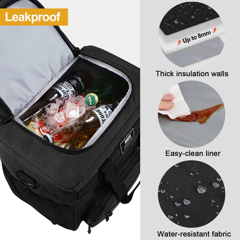 MIER Large Lunch Box for Men Women Adult Insulated Soft Sided Cooler 30 Can Leakproof Lunch Bag Collapsible for Work Travel Camping Beach, 18L (Black-No Luggage Strap)
