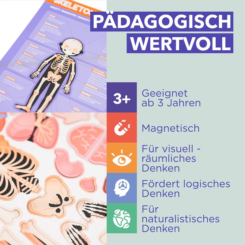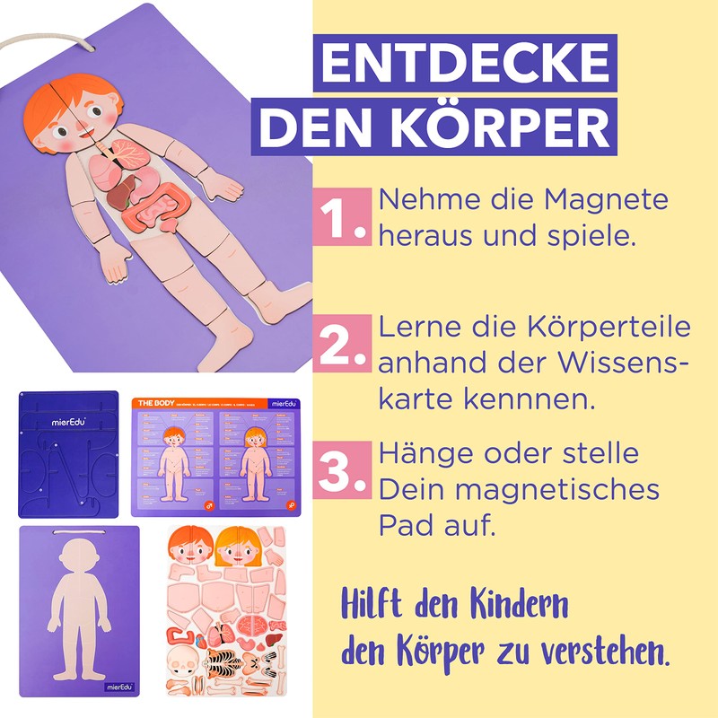 mierEdu Magnetic Pad - Human Anatomy I Designed for Beginners I Teaches Body Parts, Bones & Organs I Toy for Children I Toy from 3 Years