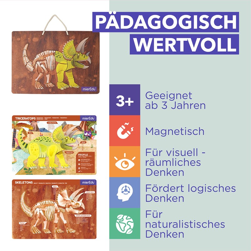 - Magnetic puzzle game – promotes imagination: the magnetic toy for children playfully promotes the creativity of boys and girls and teaches the basics of triceratops, including the body, bones and anatomy