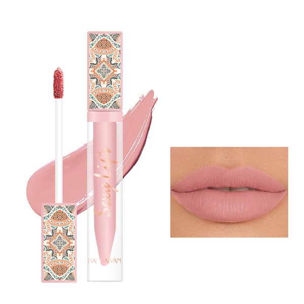 MIESCHER Matte Pink Lip Gloss for Women, Long-Lasting Waterproof Lip Stain Non-stick Moisturizing Lip Gloss Lipstick , High Pigment Lip Color, Vivid Color, Water Lip Tint, Matte Vegan Liquid Lipstick Makeup (1# Nude Pink)