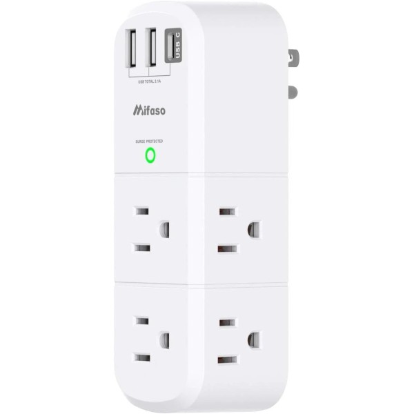 Mifaso Surge Protector 6 Outlet 3 USB 1800J Swivel Power Hub