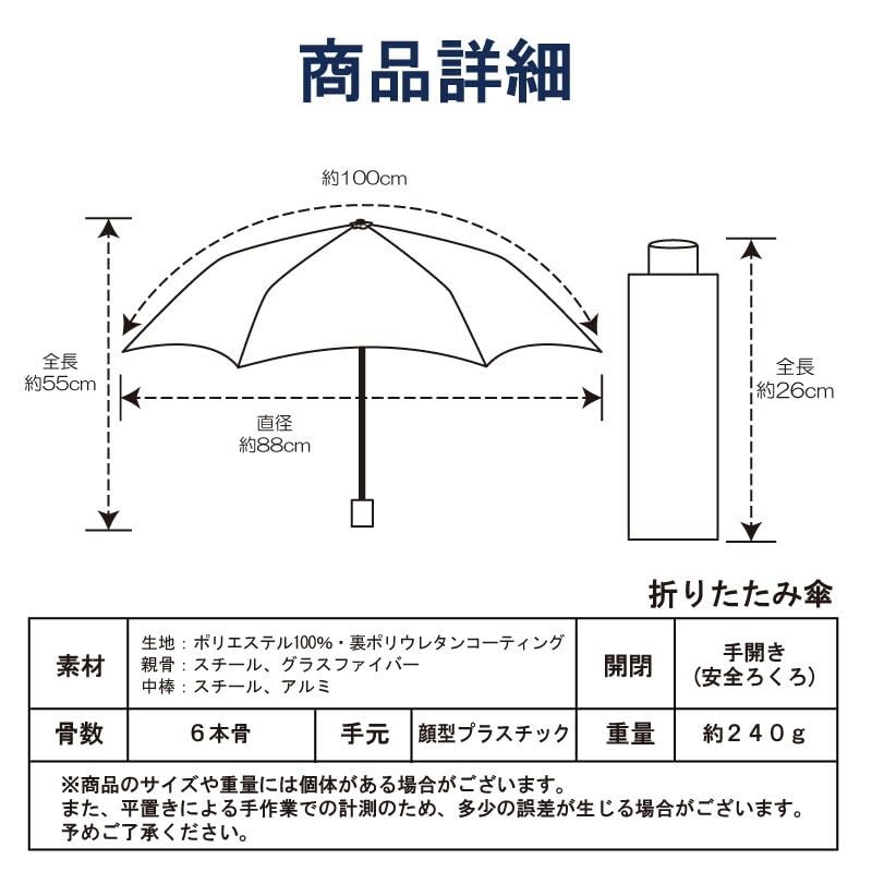 Total length of umbrella when folded: Approx. 10.2 inches (26 cm).