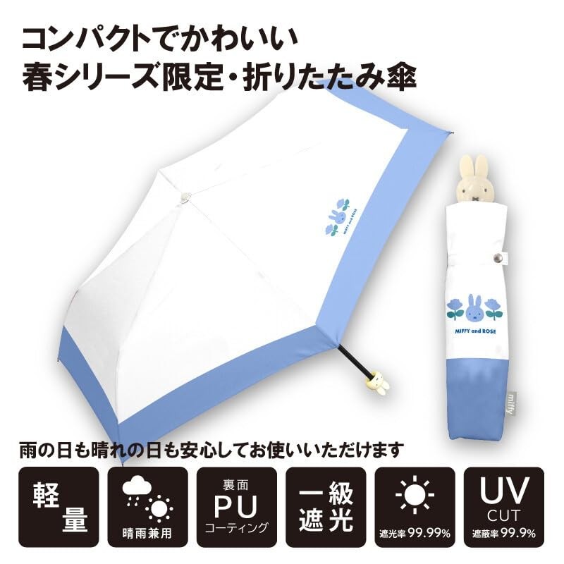Miffy Spring of Bruna Fair Limited Edition Class 1 Light Shielding Rain or Sun Umbrella, Folding Umbrella, Miffy & Rose Blue, blue