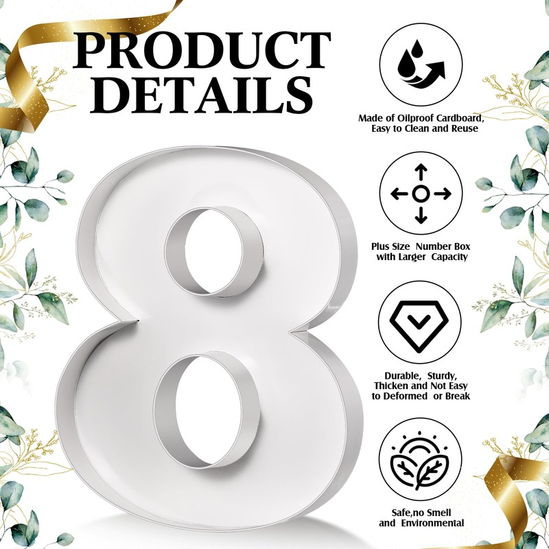 Mifoci 13.7" Cardboard Number for Charcuterie Birthday Party and Anniversary Fillable Paper Mache Chocolate Candy Graduation Decoration(White, 8)