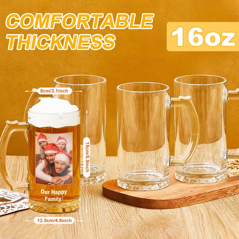 - Convenient Handle for Easy Applications: each personalized beer mug comes with a sturdy handle, providing a comfortable grip and keeping accidental spills, ensuring a hassle free drinking experience on Father's Day, Oktoberfest, birthday, wedding, bar, kitchen, and more