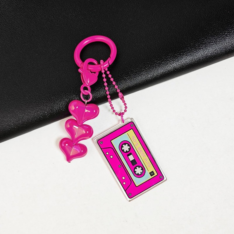Mifoneix Key Chain Colorful 70s 80s Cassette Tape Resin Acrylic Dangle Keychain accessories outfits for Women Valentine Gift Girl Gifts Charm