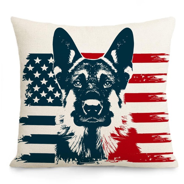 - Patriotic Dog Design: Celebrate your love for dogs and country with this 18x18 inch pillow cover featuring a striking graphic of a German Shepherd set against a backdrop of the American flag.