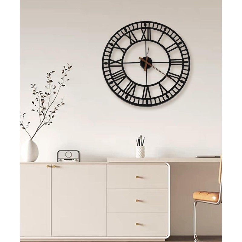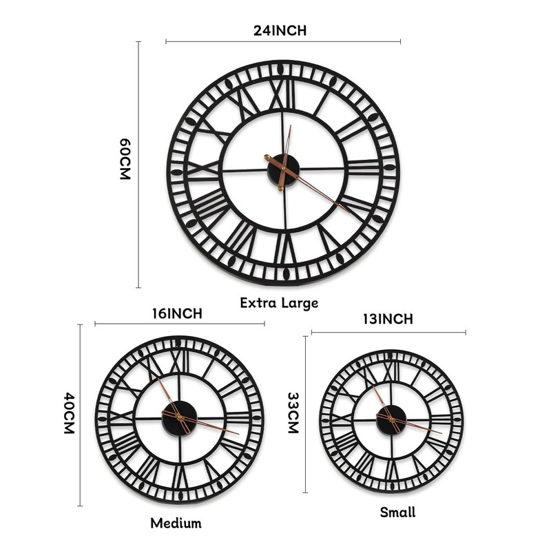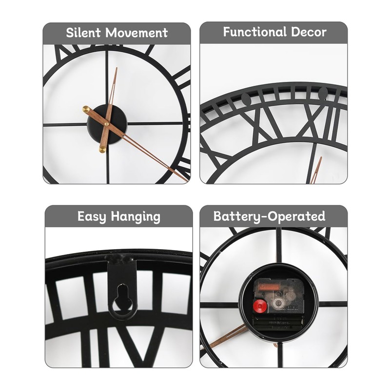 - Materials & Craftsmanship: This decorative wall clock features a sleek black metal finish, exuding an elegant and timeless aesthetic.The vintage-inspired design, with its intricate details and sturdy construction, adds a touch of sophistication to any room.