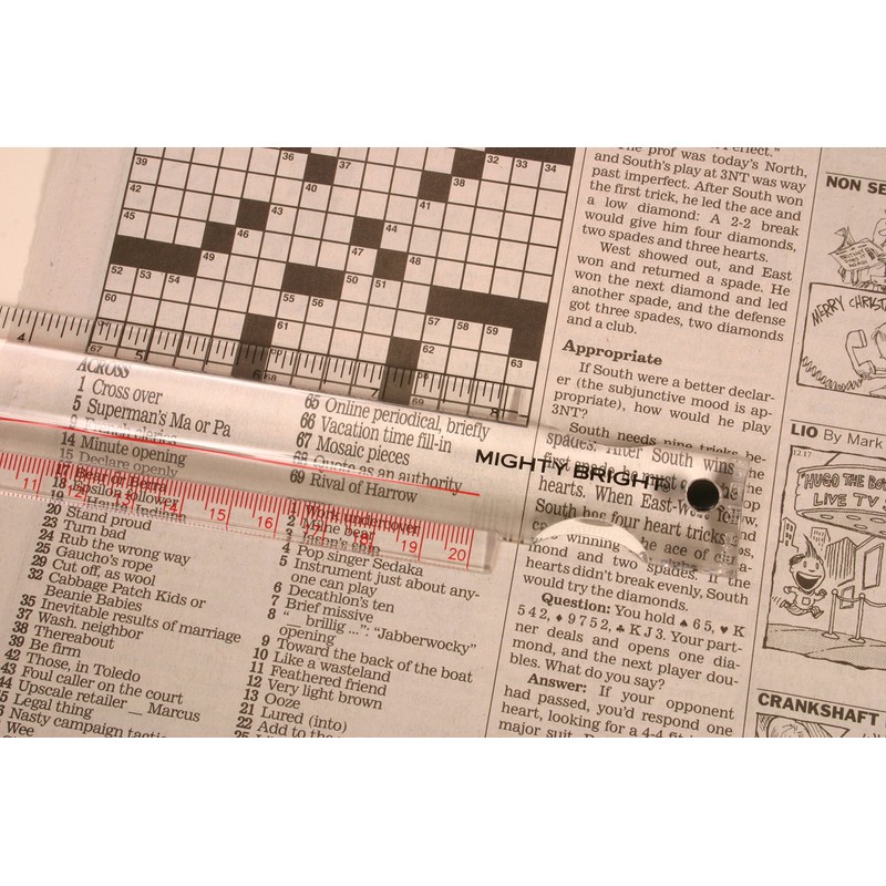 Light has almost magical properties -- you’ll see what we mean with our Ruler Magnifier. It combines the practicality of a ruler and magnifying lens, and the simple physics of harnessed natural light. Lay the ruler directly on top of your materials to double the image size; the optical quality lens is specially shaped to gather and direct ambient light to the viewing area. The inch and metric scales are set above and below the magnified viewing zone. Smooth notches at the ruler's end create a comfortable grip and a thin red place-holding line helps with tasks as varied as numbers crunching, checking blueprints, marking sewing patterns, leisure reading, and more.