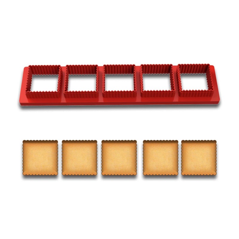 Elevate your baking with the Mini Scalloped Square Cookie Cutter Set! This set includes 5 perfectly shaped 1-inch squares with fluted edges, ideal for creating bite-sized cookies, petit fours, fondant decorations, and crafting projects. The 6.75x1.5-inch cutter strip allows for quick and uniform cutting, saving time while ensuring precision. Made from food-safe plastic, these cutters provide smooth and detailed results every time. Whether you're decorating cupcakes, making fancy pastries, or crafting unique treats, this set is a must-have for any baker or cake decorator! Hand wash only.