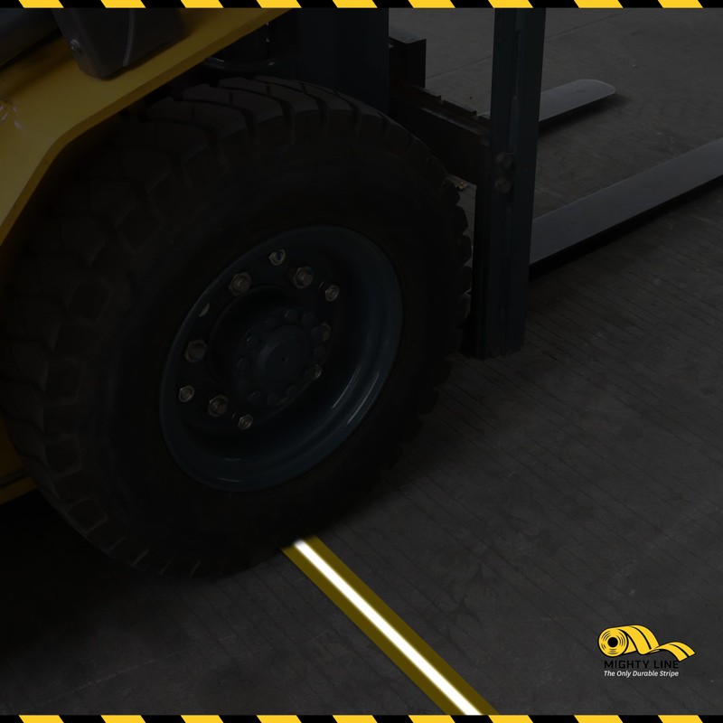 • IMPROVE VISIBILITY: Mighty Line Glow safety reflective tape with a reflective center line is a great solution when areas of your warehouse get too dark. It helps trucks backing up to a dock to load and unload at night, and is also ideal for low light conditions throughout a workspace.