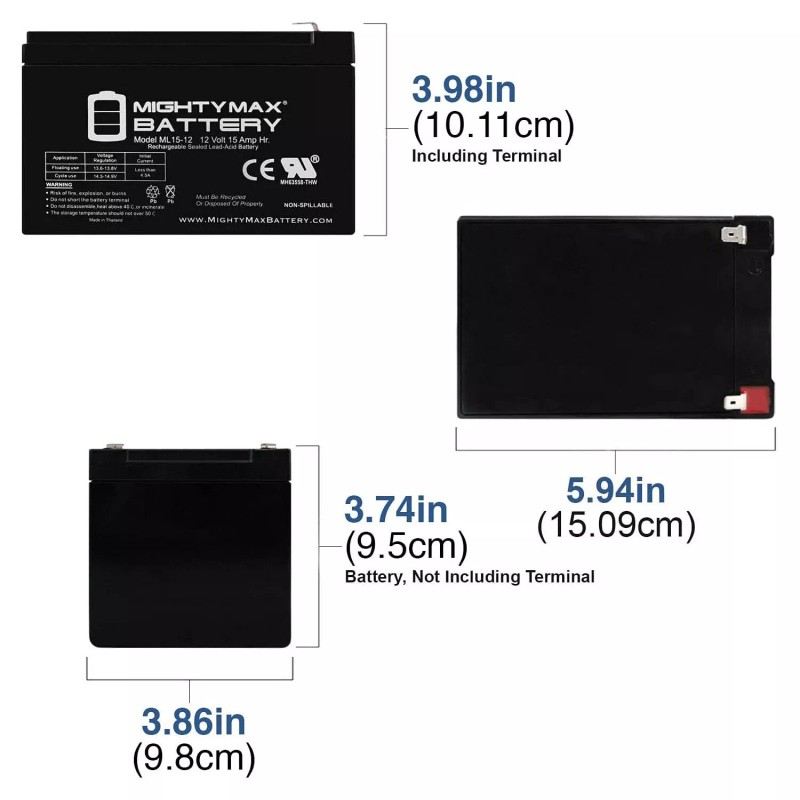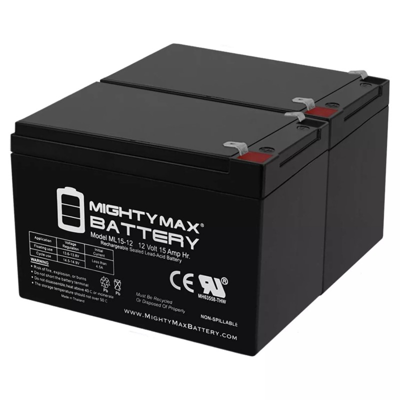 Mighty Max 12V 15AH F2 Replacement Battery for eBike 24v Bicycle Comp - 2 Pack