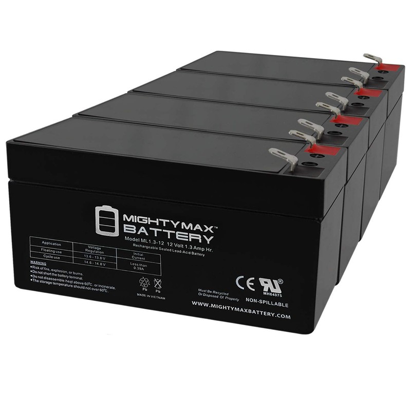 - ML1.3-12 SLA is a 12V 1.3AH Sealed Lead Acid (SLA) rechargeable maintenance free battery, Pack of 4 - UL Certified