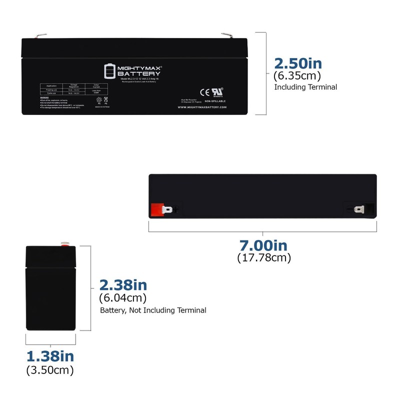 - ML2.3-12 SLA is a 12V 2.3AH Sealed Lead Acid (SLA) rechargeable maintenance free battery, Pack of 10 - UL Certified