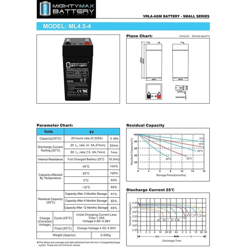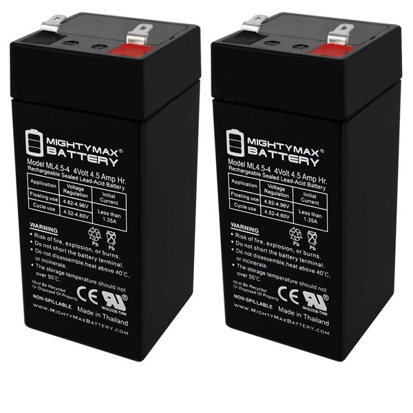 - ML4.5-4 SLA is a 4V 4.5AH Sealed Lead Acid (SLA) rechargeable maintenance free battery, Pack of 2 - UL Certified
