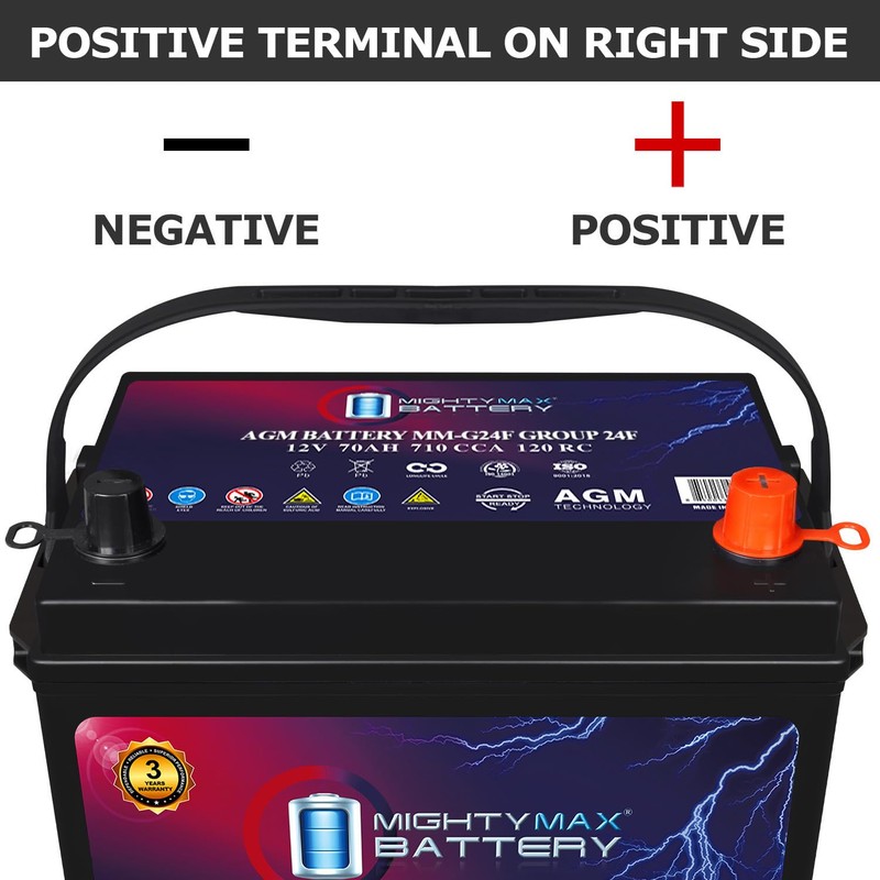 Mighty Max Battery MM-G24F Group Size 24F 12V, 70Ah, 120RC, AGM, 710 CCA, Replacement Battery Compatible with Land Rover Land Rover 2.3Liter 72