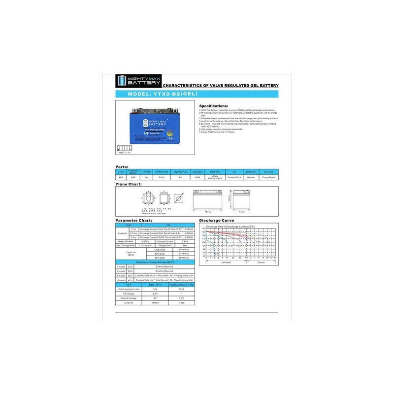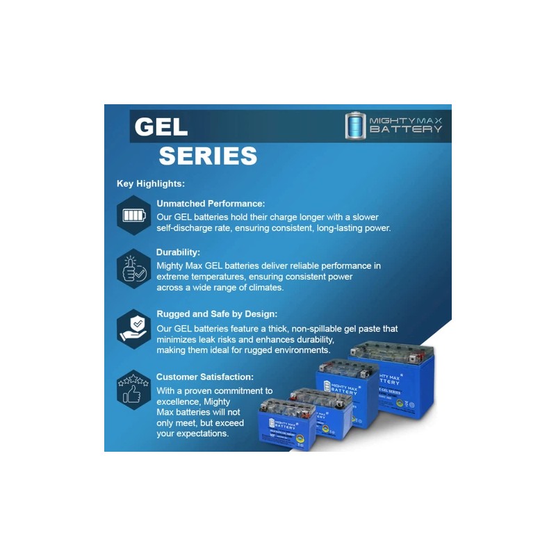 Mighty Max YTX9-BSGEL 12V, 8Ah, GEL, Replaces Polaris Ranger 150 23-24 - 6 Pack