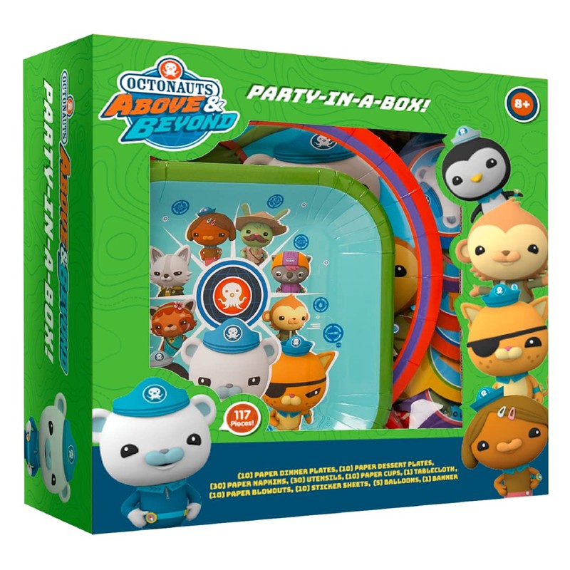 - OFFICIAL OCTONAUTS ABOVE AND BEYOND PARTY-IN-A-BOX - Explore your next party with the Octonauts crew! An adventurous collection of oceanic party supplies and decorations featuring all eight of the adorable animal members of the Octonauts Above and Beyond.