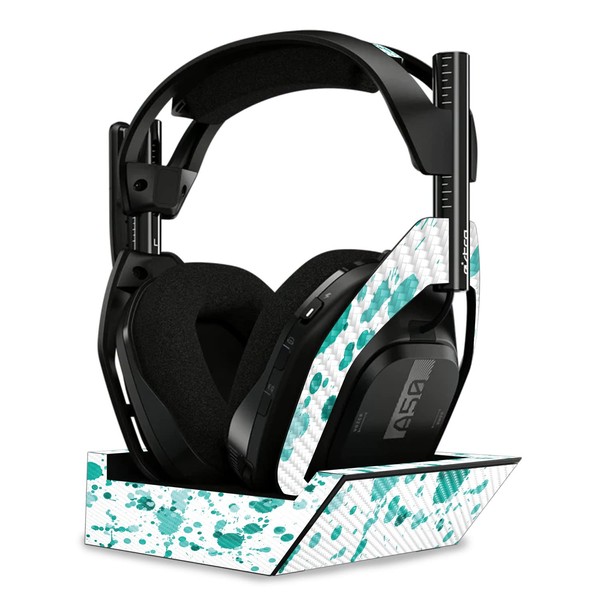 MightySkins Carbon Fiber Skin Compatible with Astro A50 Wireless Headphones + Base Station (Gen 4) - Teal Splatter | Protective, Durable Textured Carbon Fiber Finish | Easy to Apply | Made in The USA