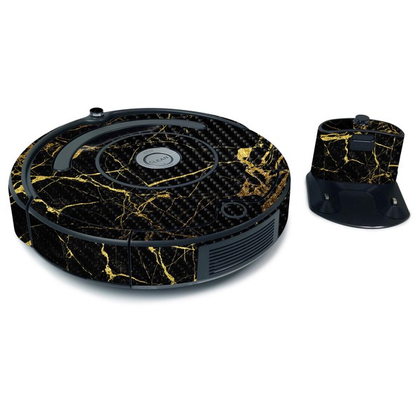 MightySkins Carbon Fiber Skin for iRobot Roomba 675 Max Coverage - Black Gold Marble | Protective, Durable Textured Carbon Fiber Finish | Easy to Apply, Remove, and Change Styles | Made in The USA