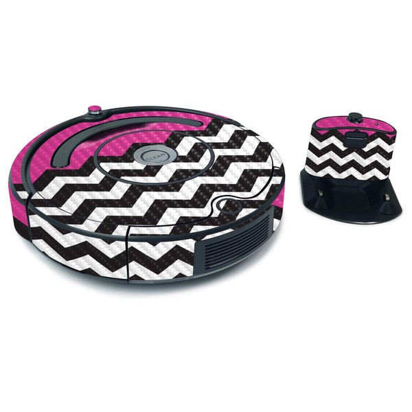 MightySkins Carbon Fiber Skin for iRobot Roomba 675 Max Coverage - Hot Pink Chevron | Protective, Durable Textured Carbon Fiber Finish | Easy to Apply, Remove, and Change Styles | Made in The USA