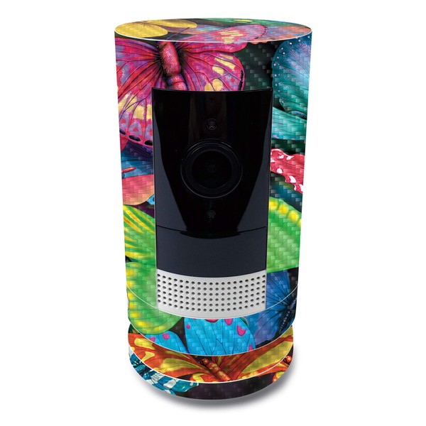 MightySkins Carbon Fiber Skin for Ring Stick Up Cam Battery - Butterfly Party | Protective, Durable Textured Carbon Fiber Finish | Easy to Apply, Remove, and Change Styles | Made in The USA