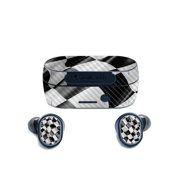 MightySkins Carbon Fiber Skin for Skullcandy Sesh True Wireless Earbuds - Race Flag | Protective, Durable Textured Carbon Fiber Finish | Easy to Apply, Remove, and Change Styles | Made in The USA