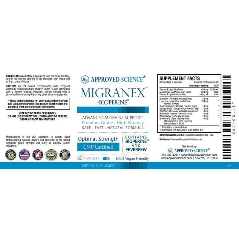 - HIGH QUALITY INGREDIENTS: Migranex uses a scientifically formulated combination of the most effective and extensively researched ingredients known to combat migraines. Every ingredient was selected by a team of doctors and scientific researchers based on clinical data and designed to get results more effectively than any other migraine supplement available.