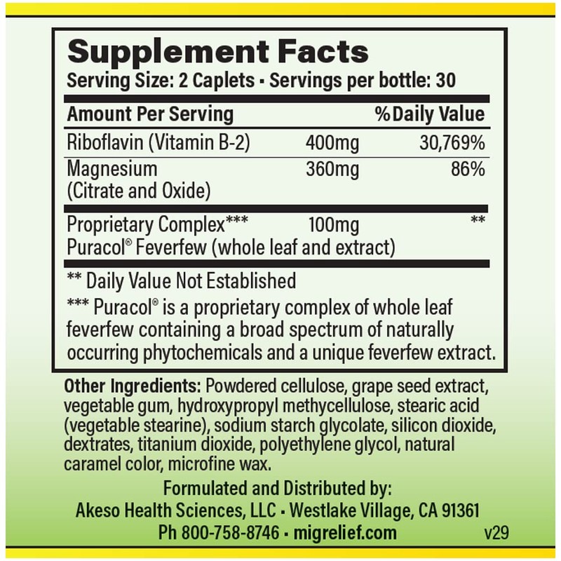 - Proven ingredients - formulated by migraine supplement pioneer. Based on scientific evidence, Akeso's Chief Scientific Officer Curt Hendrix was the first to discover the unique combination of Magnesium, Riboflavin (Vitamin B-2) and Puracol Feverfew for migraine sufferers for which he received two United States patents.